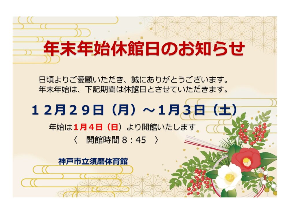 【ご案内】年末年始休館日について